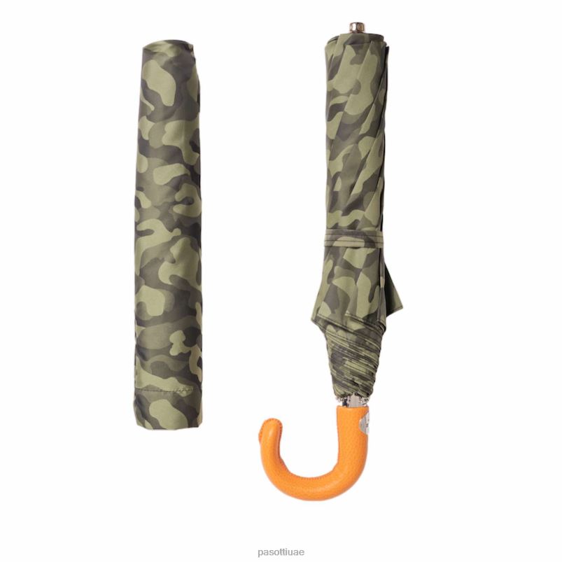 مظلة مموهة قابلة للطي بمقبض جلد برتقالي