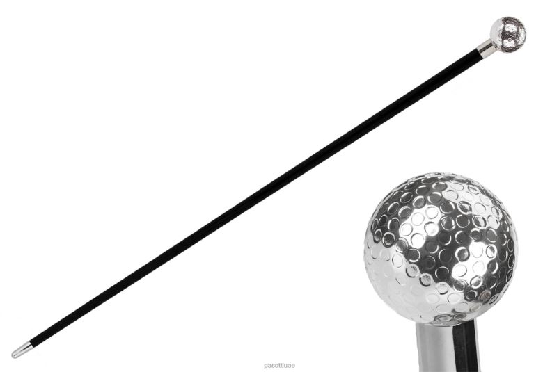 مقبض من الراتنج مطلي بالفضة - عمود خشبي، نهاية نحاسية مع مطاط