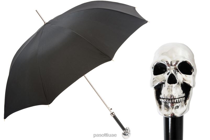 مظلة على شكل جمجمة فضية مع علبة وحلقة